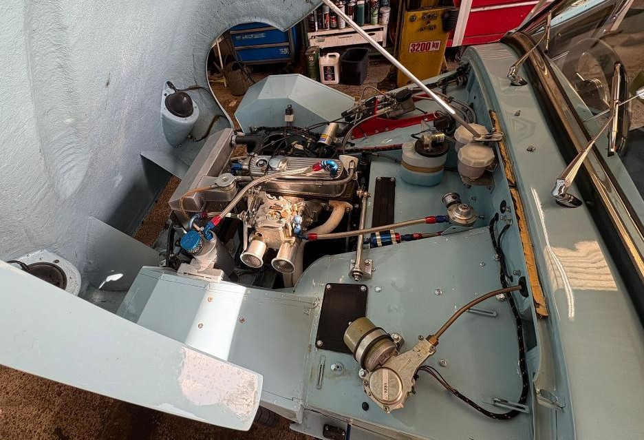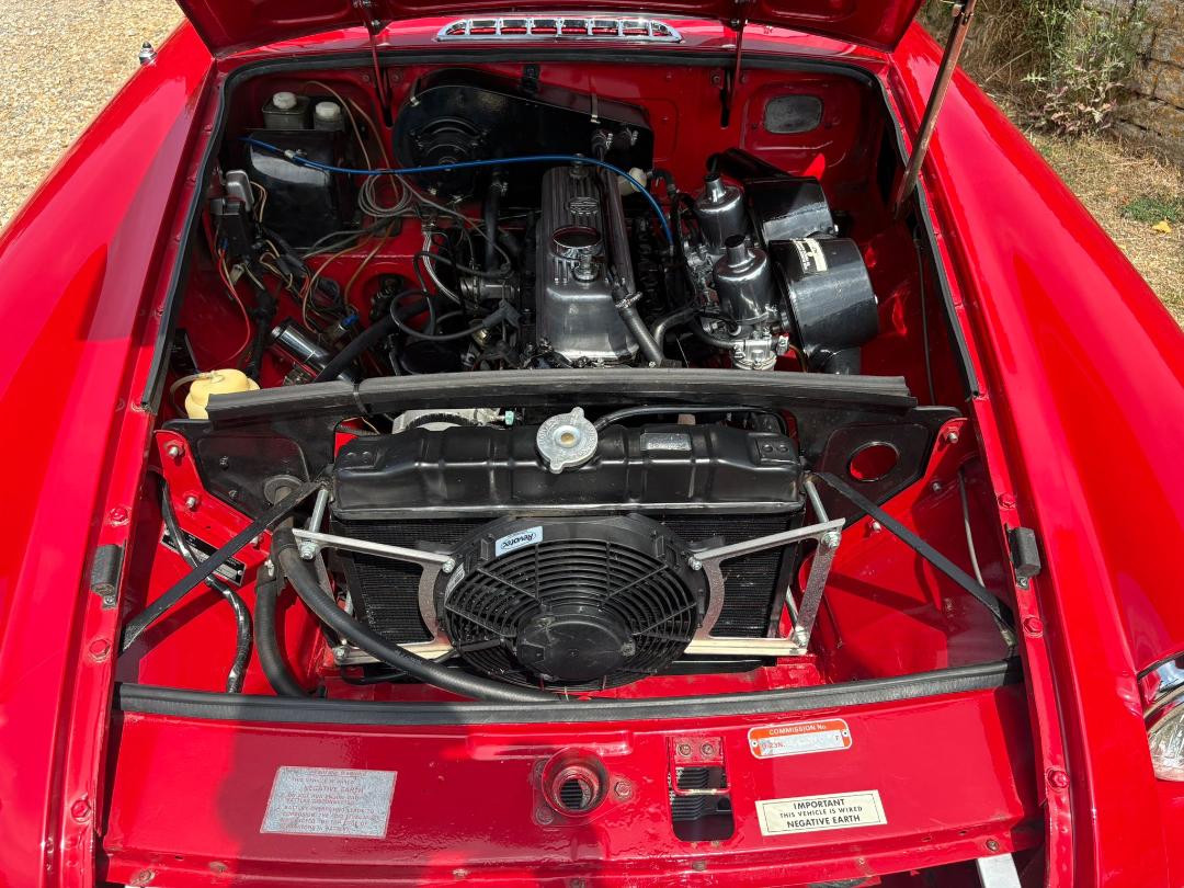 The car comes with a walnut dash, chrome wire wheels, twin choke carb with stainless steel sports exhaust, parabolic rear springs and telescopic shocks all round, Motolita wood rim steering wheel, chrome bootrack, canvas hood and