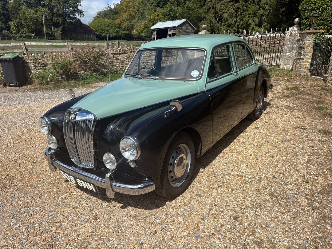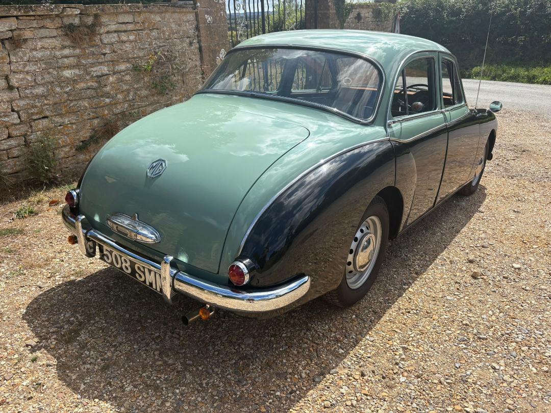 MG Magnette, 1958 Varitone, Island Green over Black with green interior.