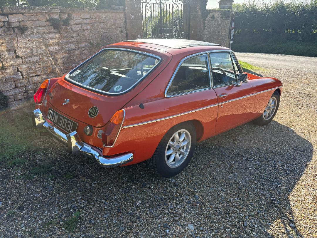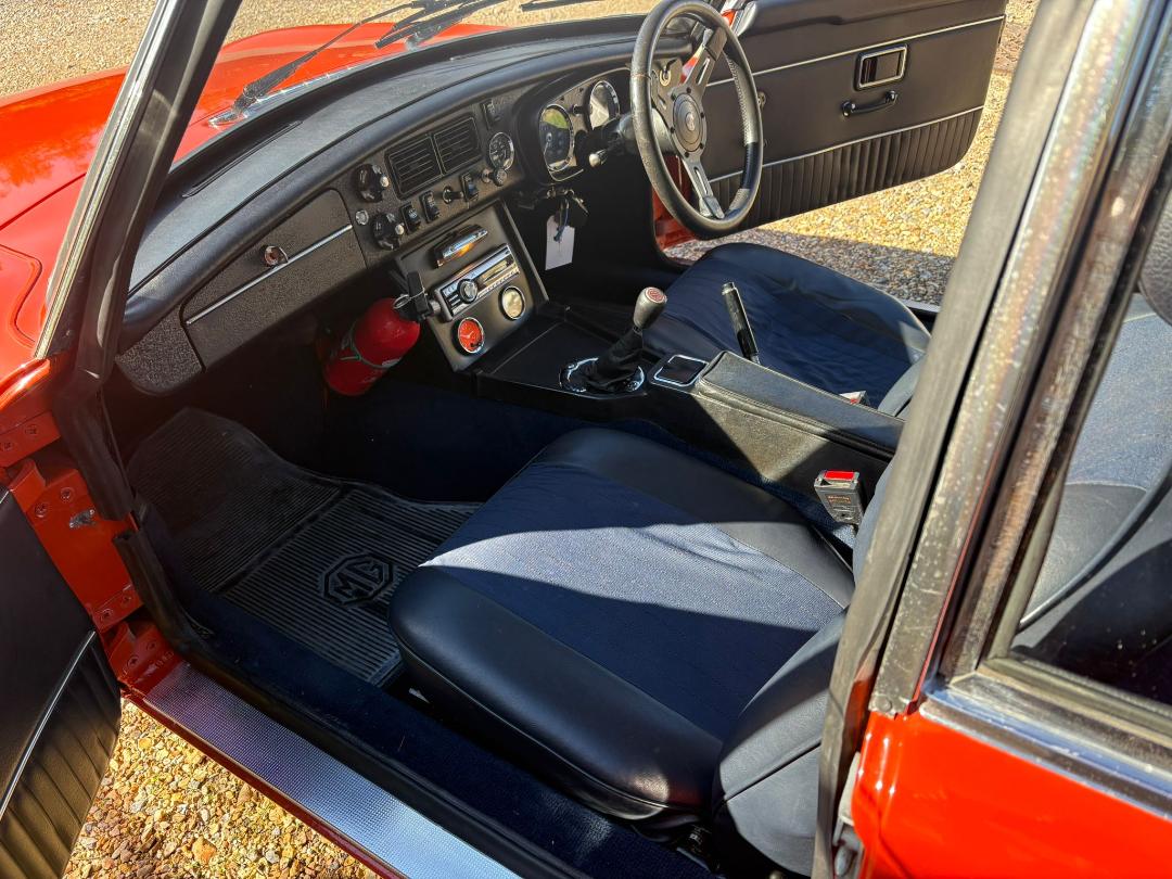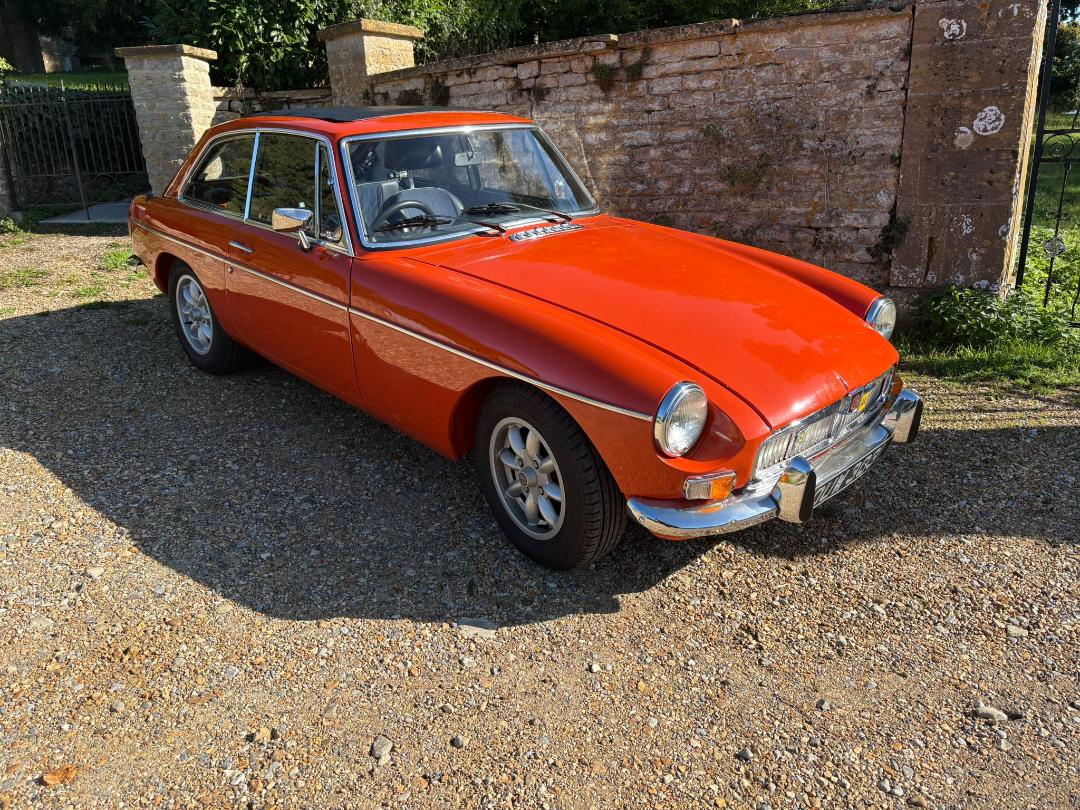 MGB GT, 1972 in Blaze with Navy interior.